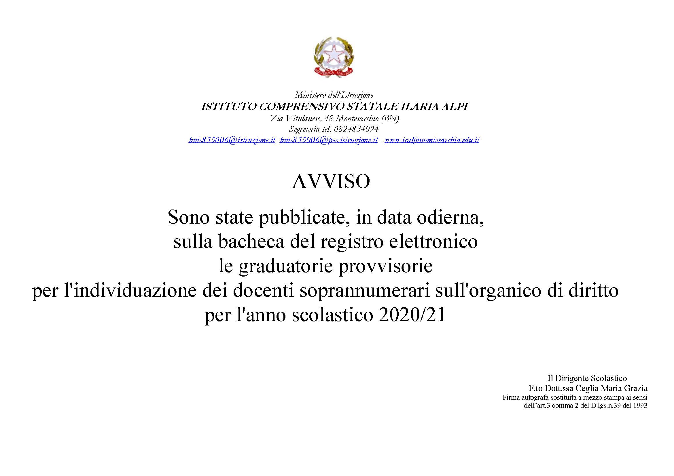 Pubblicazione graduatorie soprannumerari anno scolastico 2020/2021