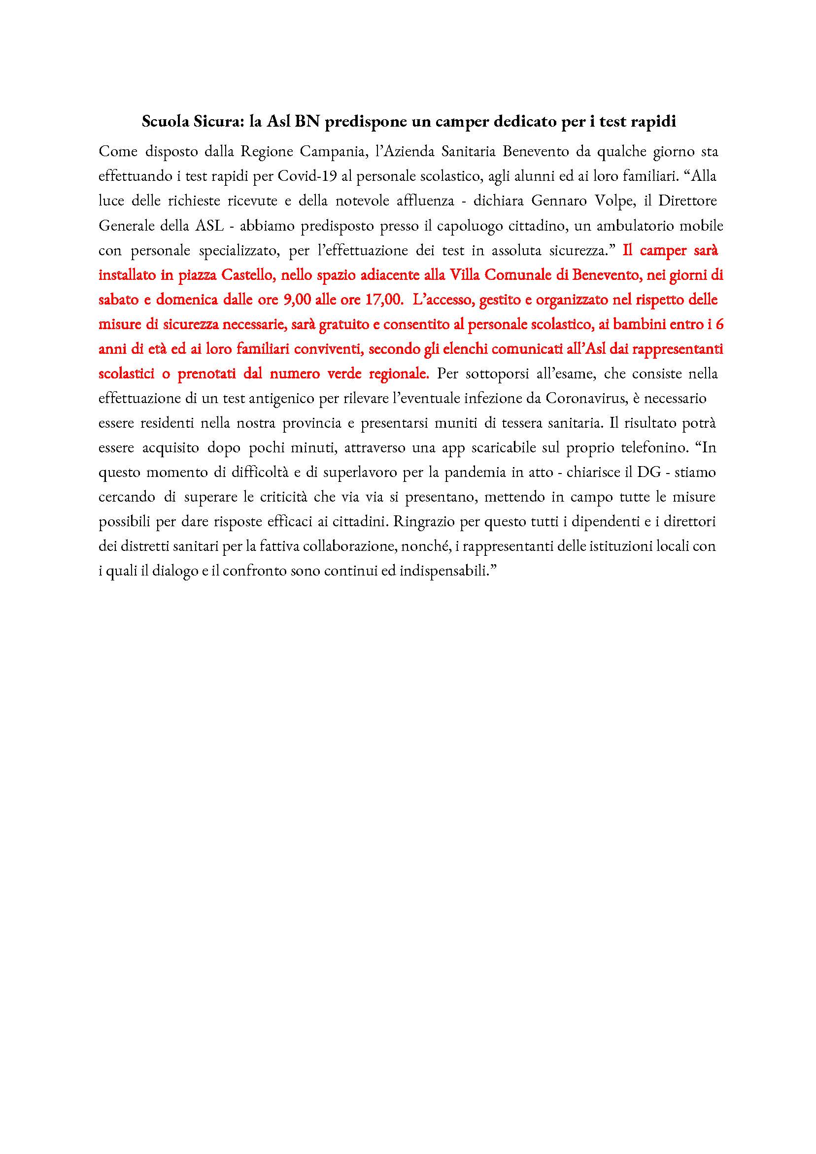 COMUNICATO ASL BENEVENTO 1