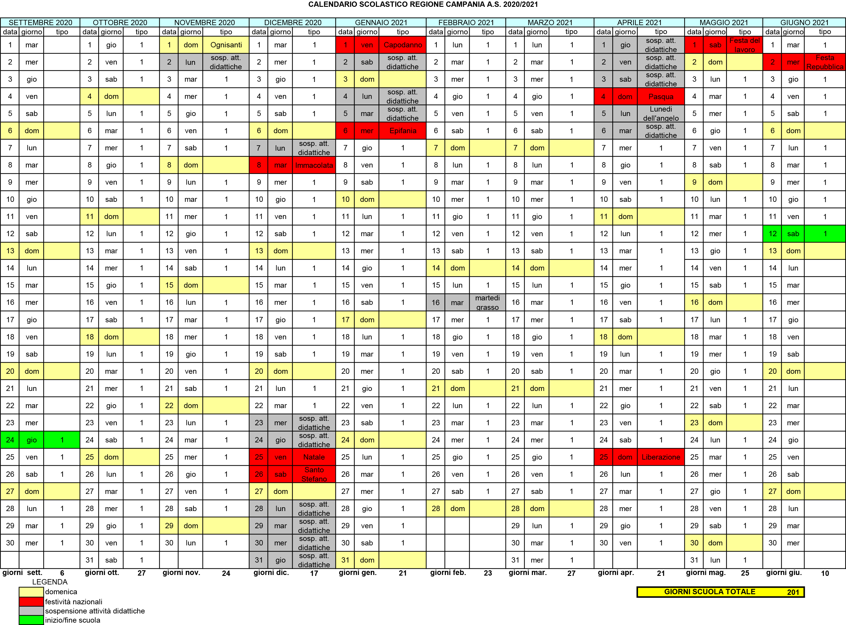 Nuovo Calendario scolastico 2020/2021