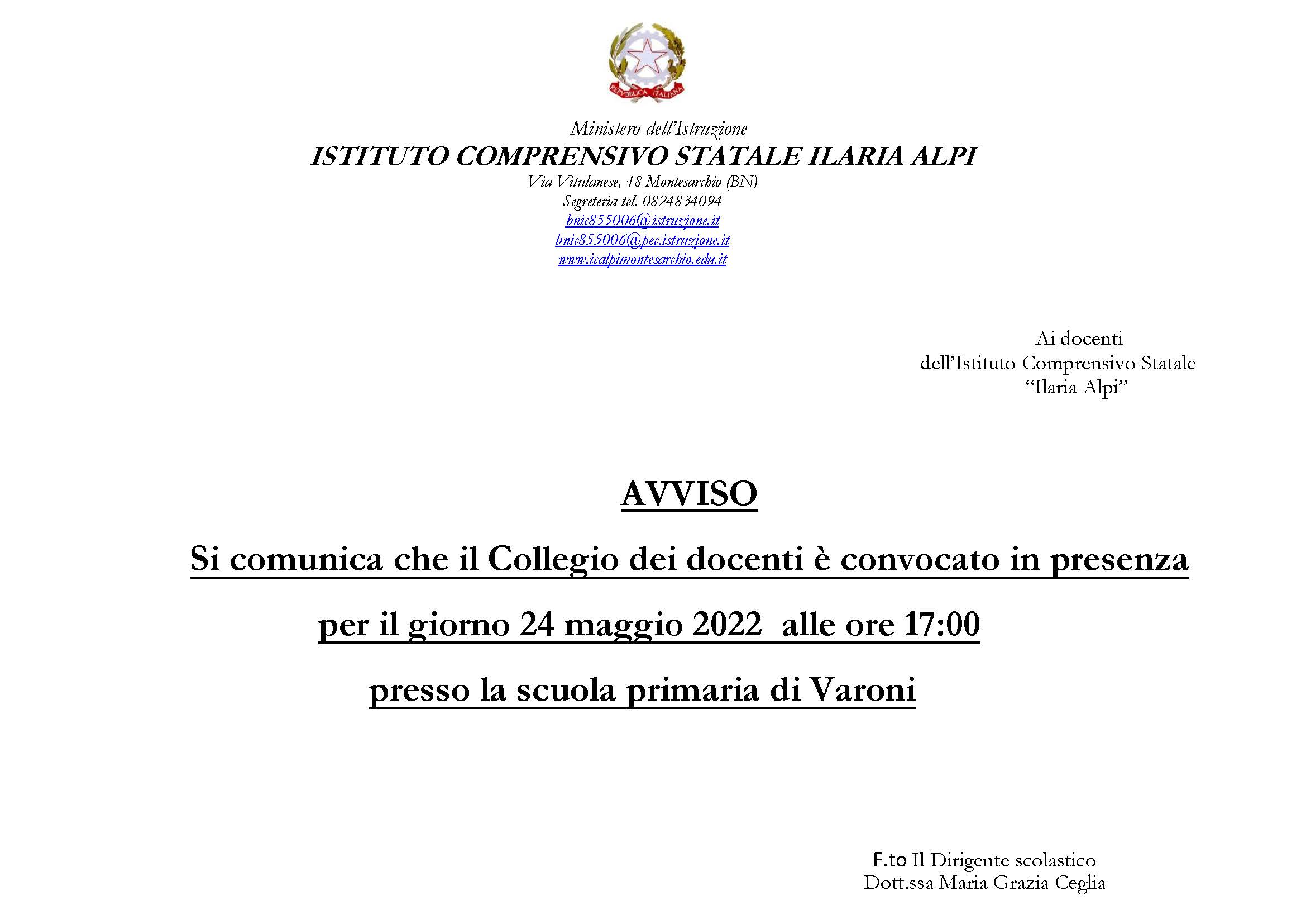 CONVOCAZIONE COLLEGIO DEI DOCENTI