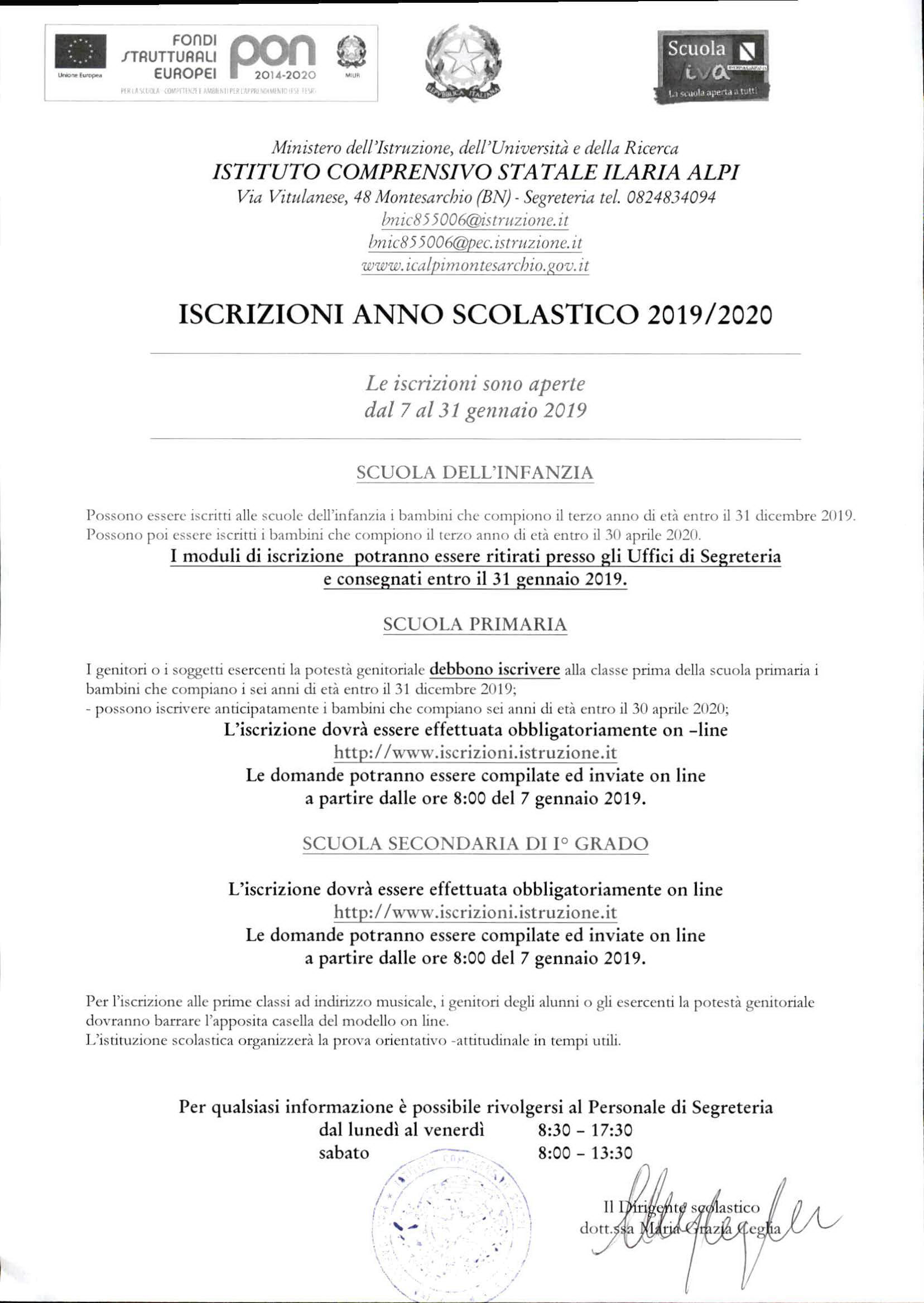 Iscrizioni anno scolastico 2019/2020