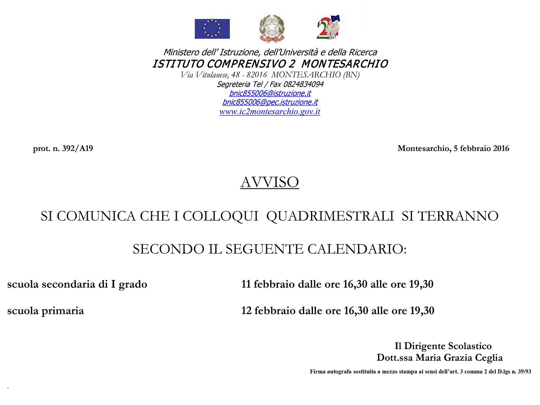 Avviso colloqui quadrimestrali