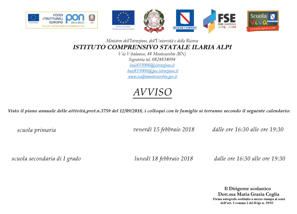 Colloqui febbraio 2019 12 Febbraio 2019 - 12:00 3 Marzo 2019Bacheca, Circolari, Disposizioni Generali, News ATA, News Docenti, News Famiglie, News Studenti
