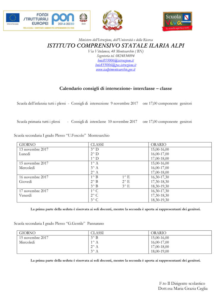 Calendario Consigli di intersezione – interclasse – classe