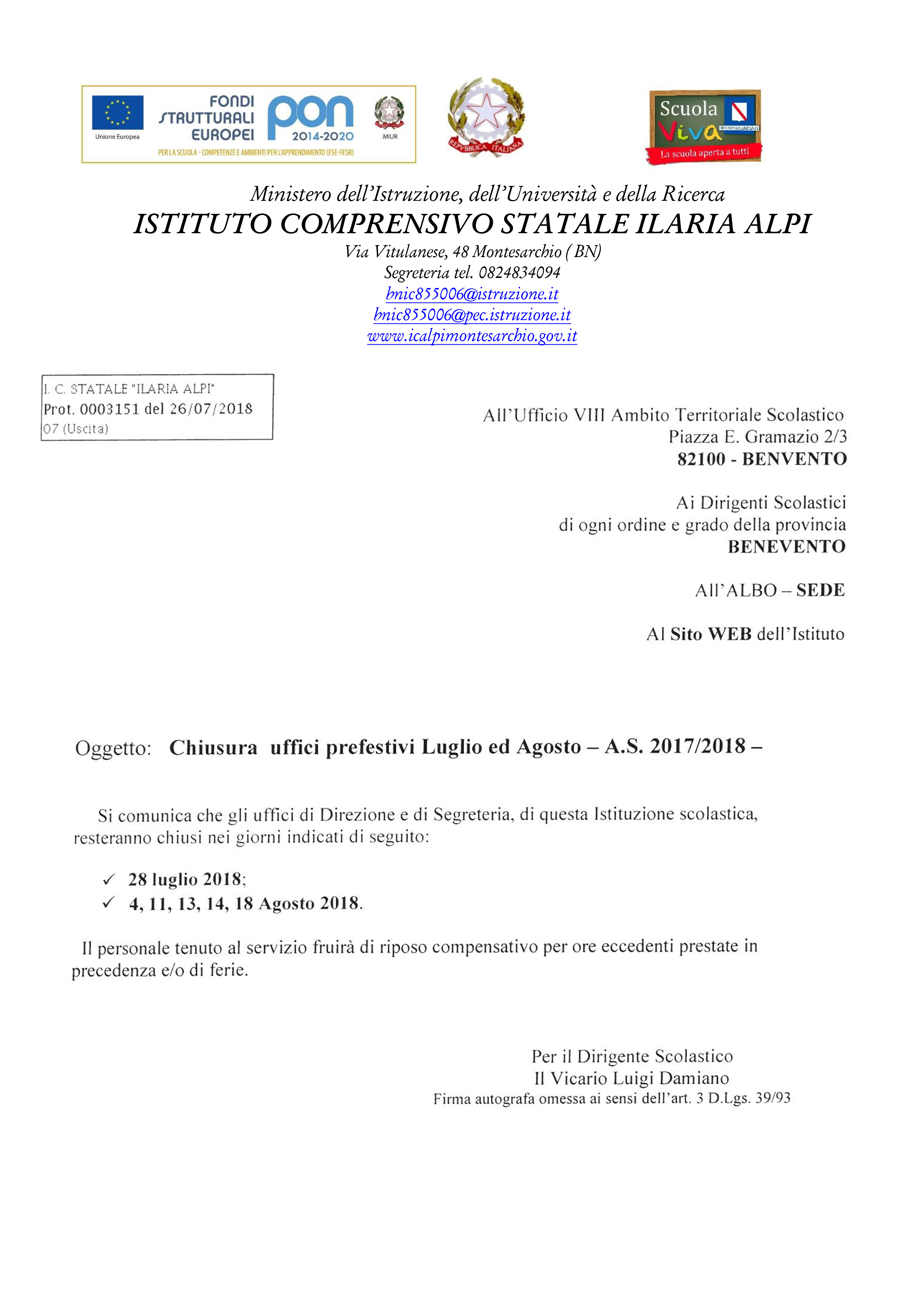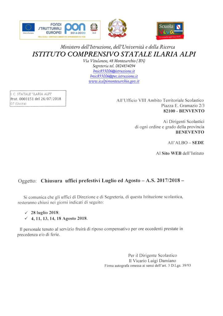 Home Bacheca CHIUSURA PREFESTIVI