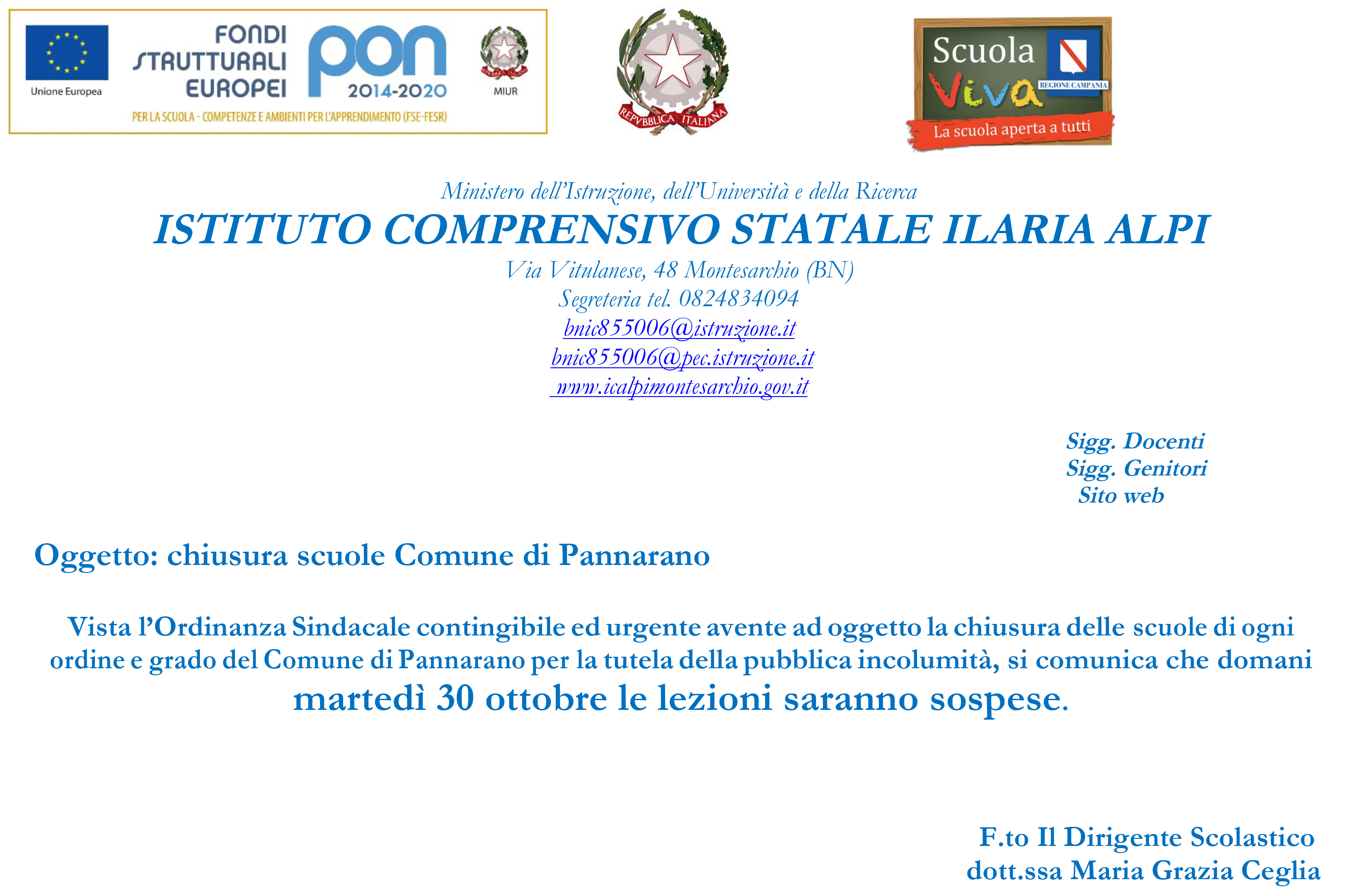 Home Bacheca Chiusura scuole Comune di Pannarano