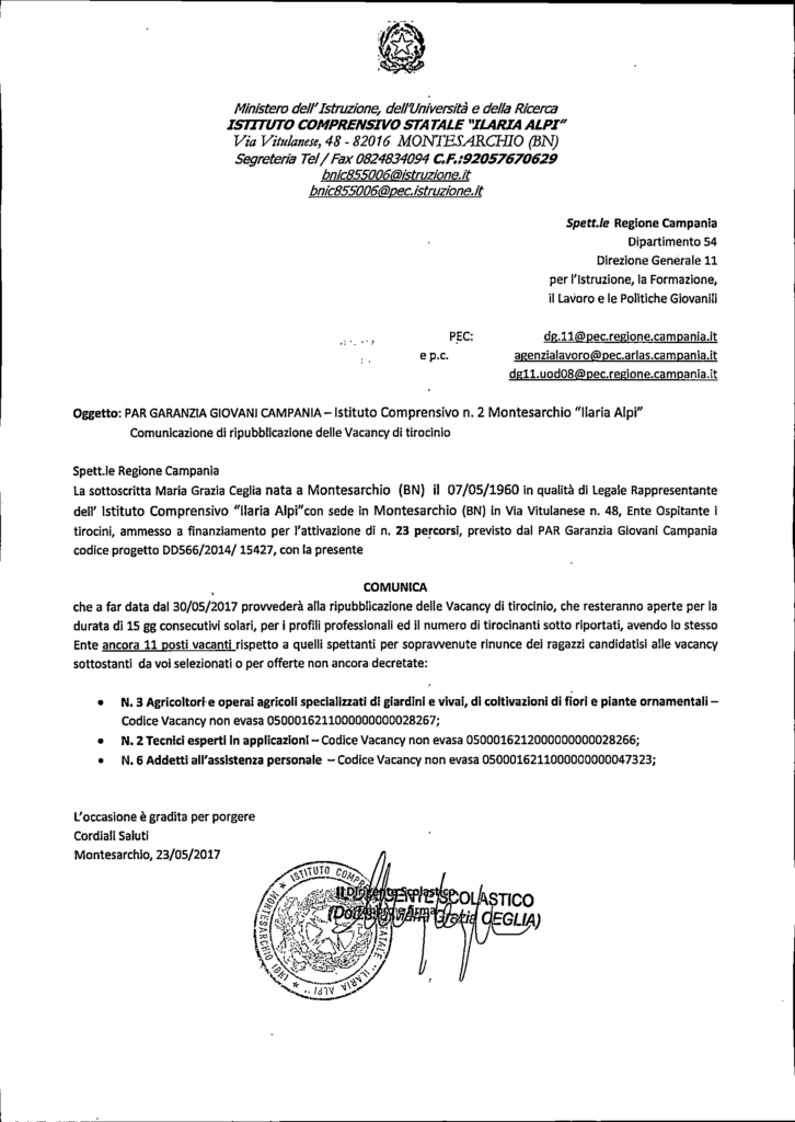 PAR GARANZIA GIOVANI CAMPANIA – ISTITUTO COMPRENSIVO STATALE ILARIA ALPI