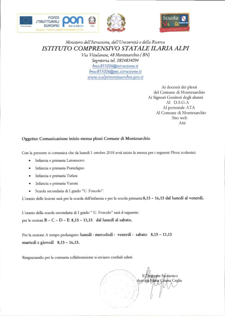 Home Bacheca Inizio mensa plessi Comune di Montesarchio