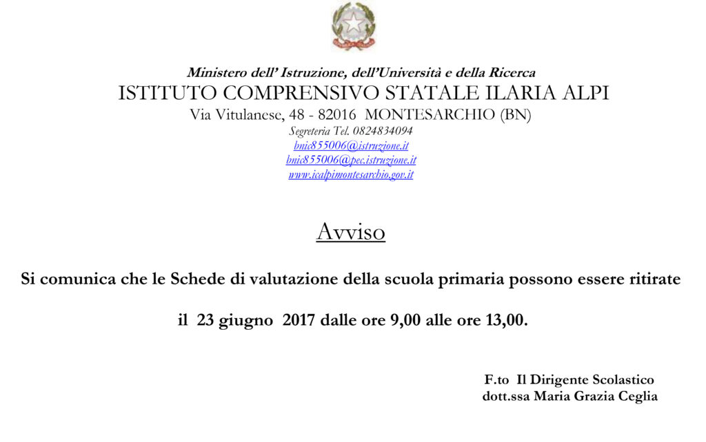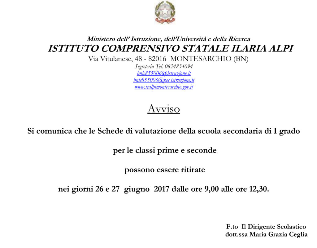 Ritiro Schede di valutazione